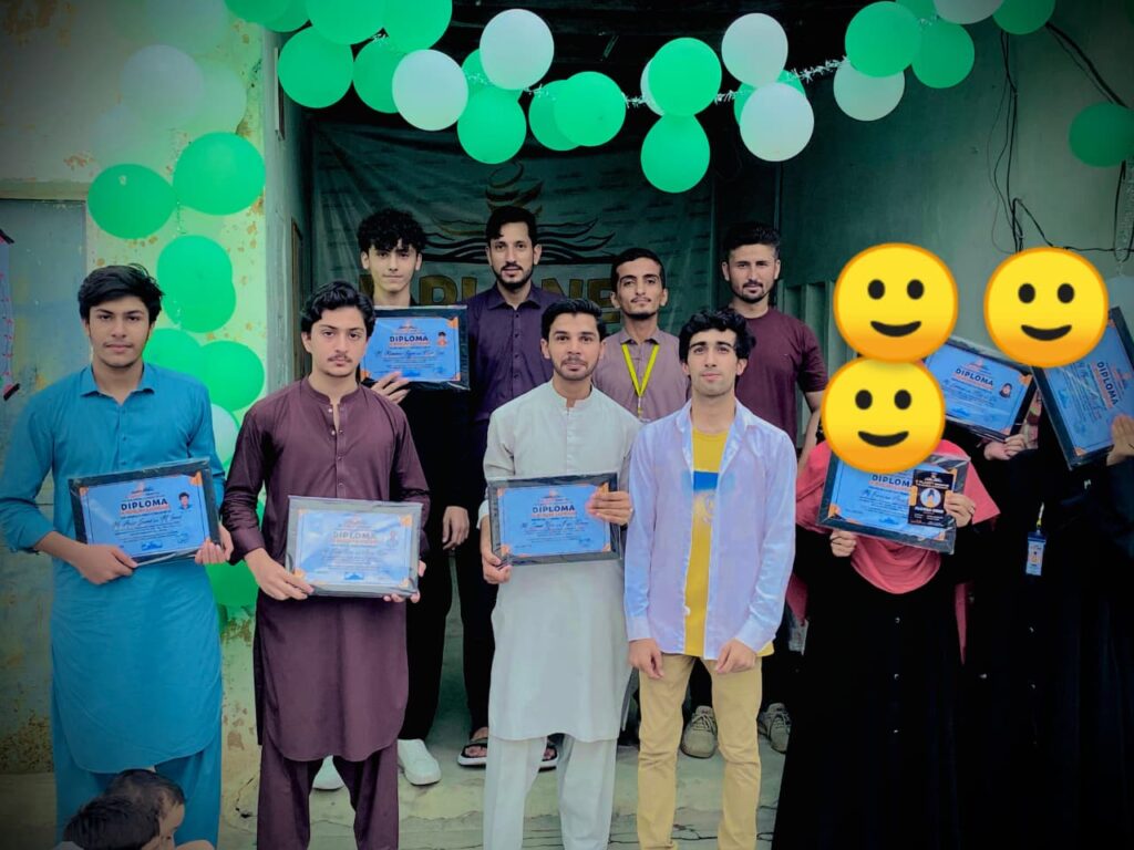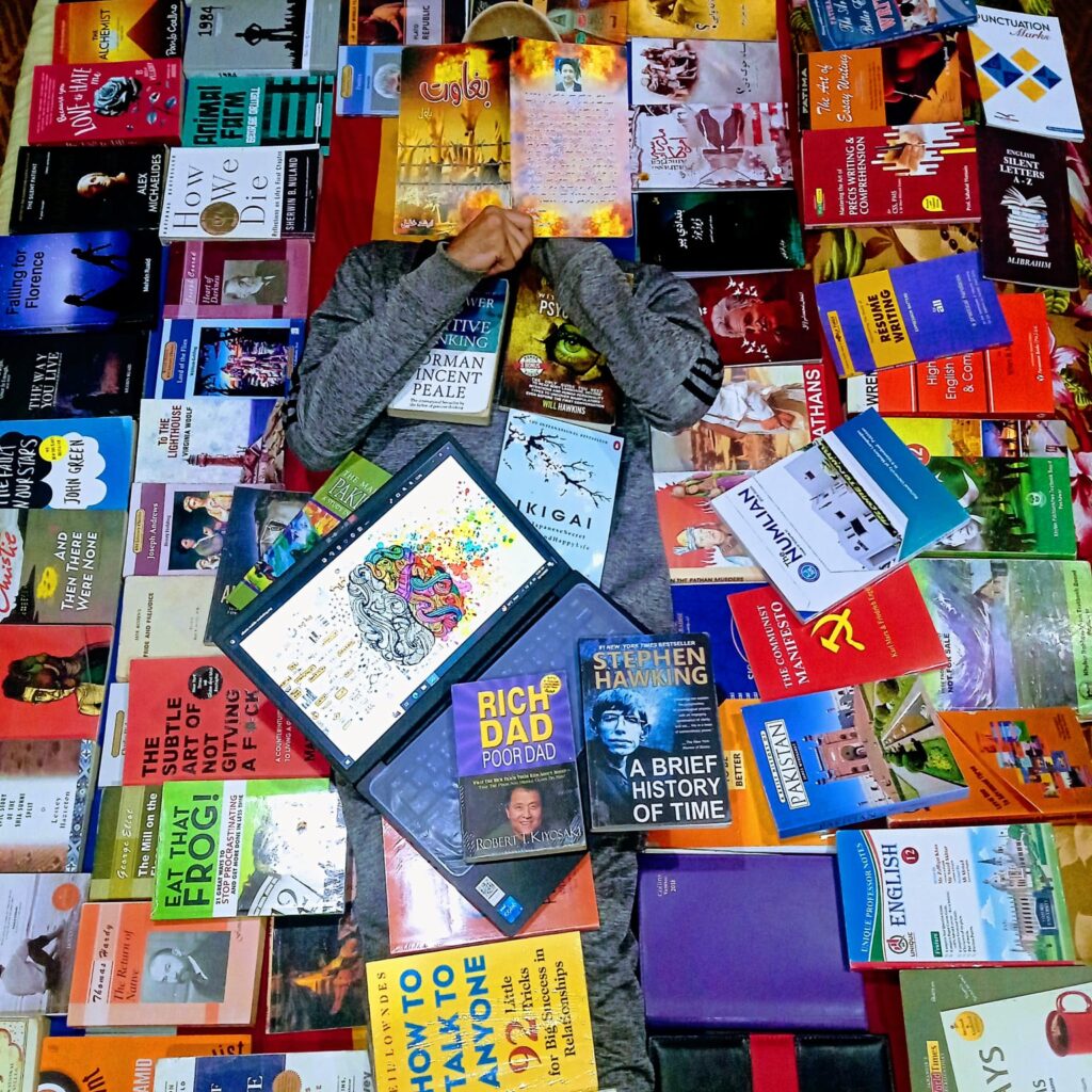Things didn’t happen that way because his brother, Bilal, helped him stop work and rejoin the academy to start teaching English. Having scored just 52% in higher secondary school, he was not eligible to take admission to any medical institute, and medical diplomas were expensive, so his dream of becoming a doctor fully vanished. His favorite teacher, Sir Mohib, because of him, IBRAHIM managed to get himself out of the dark world and realized that light also exists, recommended him to take BS English at NUML University, and he did so.